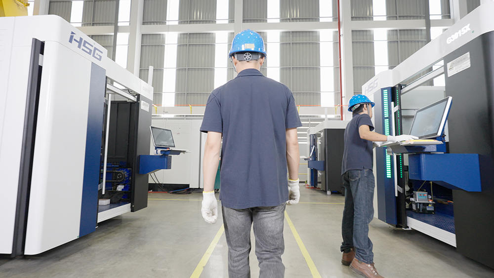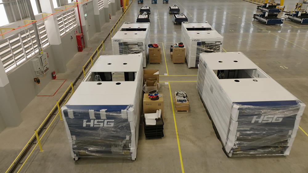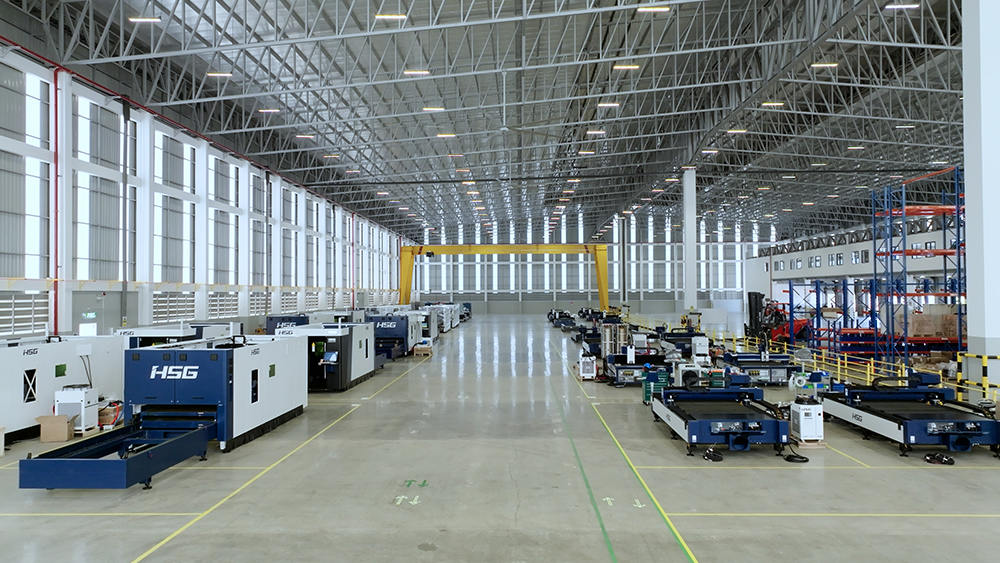 生產(chǎn)區(qū)布局40個(gè)生產(chǎn)工位,滿足40臺高端切割機(jī)同時(shí)生產(chǎn),工廠年產(chǎn)能2000臺激光加工智能裝備,目前主要生產(chǎn)宏山高端板材切割機(jī),如C系列單平臺激光切割機(jī),GX系列雙平臺激光切割機(jī)和GH系列高功率激光切割機(jī),未來將不斷結(jié)合全球市場需求,研發(fā)制造更多機(jī)型。